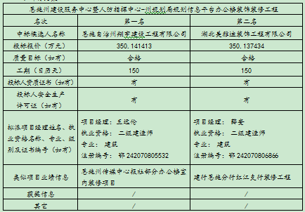 ¡¡¡¡¶÷Ê©Öݽ¨ÉèЧÀÍÖÐÐÄôßÈË·ÀÖ¸»ÓÖÐÐÄ-Öݼƻ®¾Ö¼Æ»®ÐÅϢƽ̨°ì¹«Â¥×°ÊÎ×°ÐÞ¹¤³ÌÓÚ 2015 Äê9ÔÂ17ÈÕÖÁ2015 Äê9ÔÂ22ÈÕÔÚ¶÷Ê©Öݹ«¹²×ÊÔ´½»Ò×ÖÐÐÄ Ðû²¼Õбêͨ¸æ£¬2015Äê 10Ô 15ÈÕÔÚ¶÷Ê©Öݹ«¹²×ÊÔ´½»Ò×ÖÐÐÄ¿ª±ê´óÌü£¨¶÷Ê©ÊÐÊ©ÖÝ´óµÀ58ºÅÓÊÕþ¾ÖËÄÂ¥£©¿ª±ê£¬²¢ÓÚ 2015Äê 10Ô 15ÈÕÍê³ÉÆÀ±êÊÂÇ顣ƾ¾ÝÆÀ±êίԱ»áÌá½»µÄÆÀ±ê±¨¸æ£¬¶÷Ê©×ÔÖÎÖݳÇÏç¼Æ»®ÖÎÀí¾ÖÒѾȷÈÏÆÀ±ê½á¹û£¬ÏÖ½øÐÐÆÀ±ê½á¹û¹«Ê¾¡£
